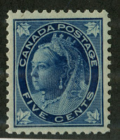 As you can see by the quantities above, these stamps were produced in relatively low quantities for definitive stamps, which usually had printings in the hundreds of millions for the low values at least. The reason is that the issue was very short lived. Why? Well despite the attractiveness of the design, the public in French-speaking Canada did not like the stamps because they could not read the denominations, and some of the colours were hard to distinguish by the dimmer candlelight or gaslight of the day. The stamps first appeared on November 6, 1897 and the last stamp, the 3c was issued January 4, 1898. By June 17, 1898 the first stamps of the series that replaced them began to appear. This set, called the Numeral Issue was almost identical in design, except that the lower maple leaves were replaced by boxed numerals, which addressed the problem for French Canadians.