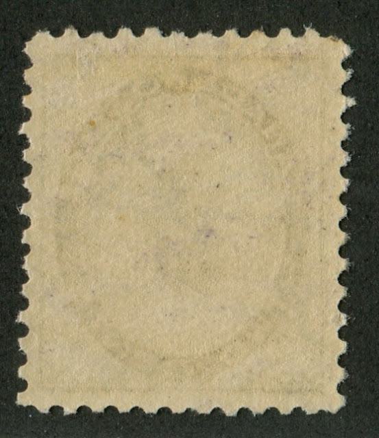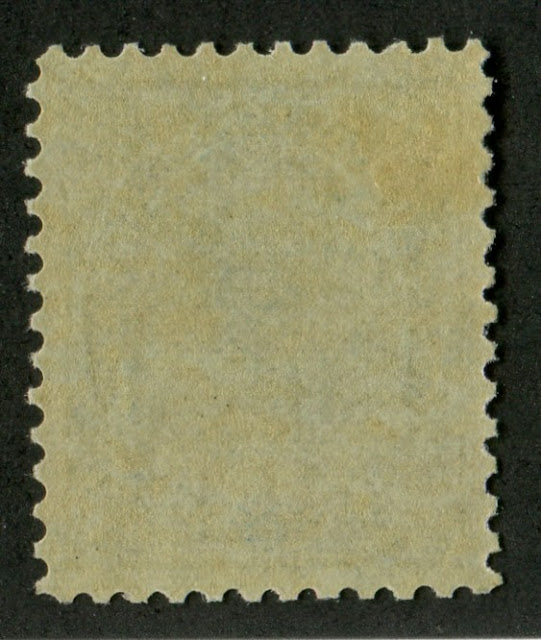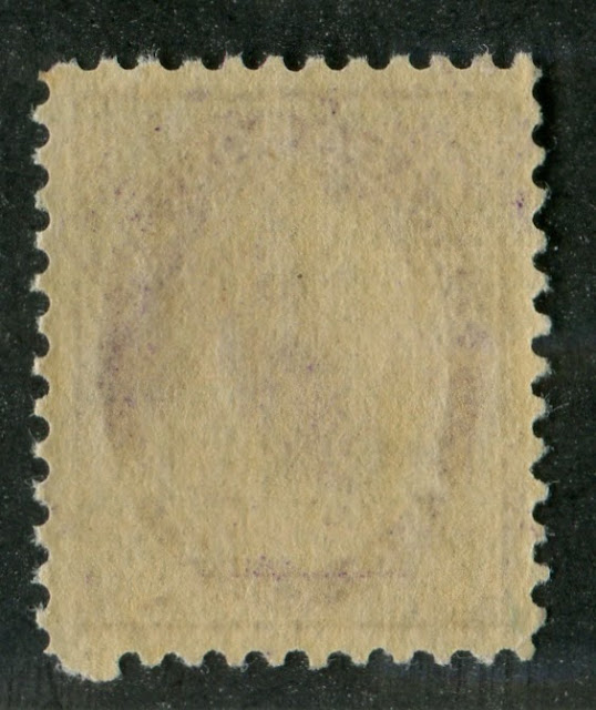 On this never hinged stamp you can clearly see the streakiness of the gum as lighter spots. Less experienced collectors who are unfamilar with the gum on this set have returned stamps like this one claiming the gum to be disturbed,. However this is absolutely not the case.