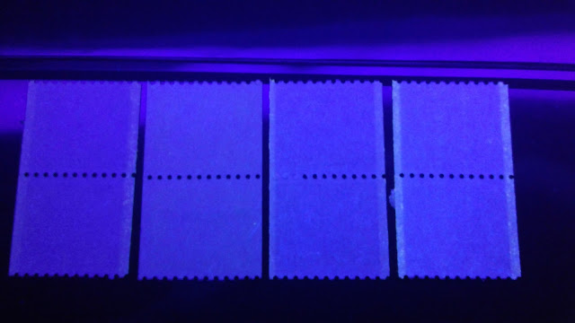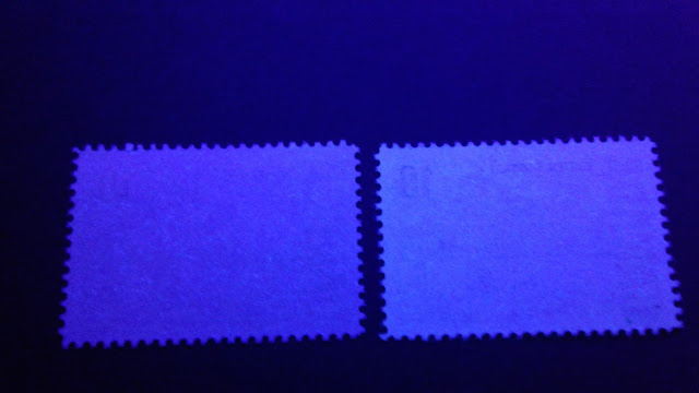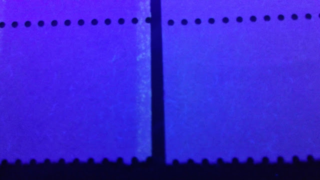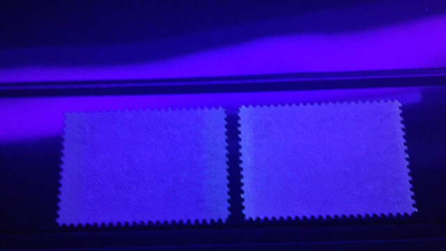 The tricky part to today's post will be getting illustrations of the varieties that show the fluorescence well. Because I have to use my ultra-violet light to show the paper types, I cannot use my scanner, and have to rely instead on my digital camera. This does not have the best resolution, but I will try to take the best pictures that I can, and hopefully they will be of sufficient clarity to illustrate what I am talking about here.