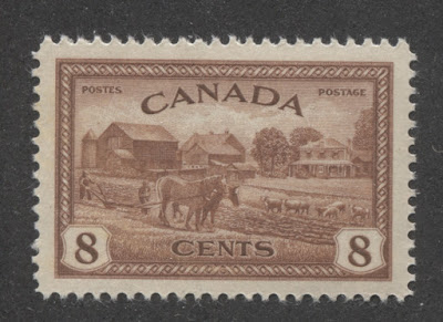 This issue was intended to replace the high value War Issue stamps in 1946. Thus a complete set of definitives technically consists of either these stamps, plus the printings of the 1c through 5c War Issue stamps from 1946 through 1949; or these stamps, plus the Postes-Postage low values from 1949-1952, depending on what year you are talking about.