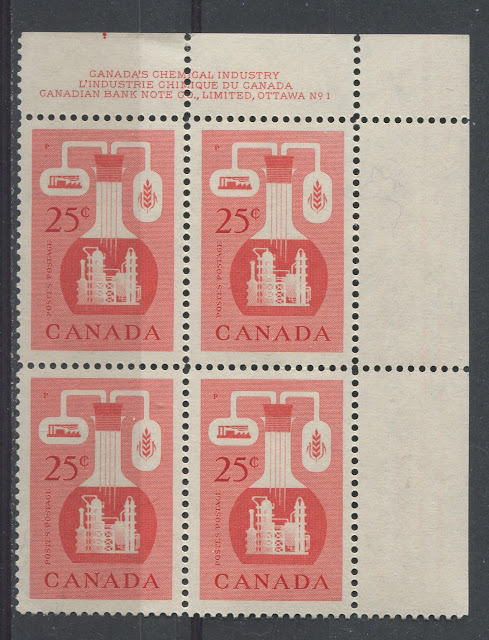 Finally on this block there are two dots, one above the other, over the "A" of "Canada's". Furthermore, you can just make out a feint horizontal line under the lower position dot. What is interesting about this block is that the dots appear on the upper right position at the top, which is not seen on any of the other values.