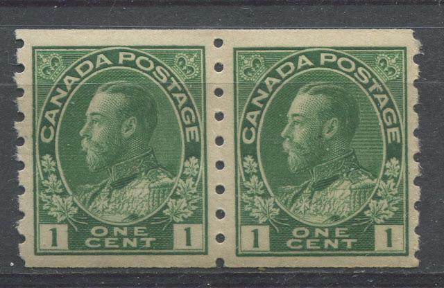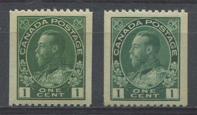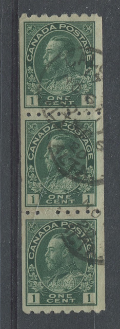 This coil issue was also experimental, as it only covered the period from 1915 to 1924. Unitrade lists both dark green and blue green shades for this coil, and neither shade corresponds to those shades described as either dark green or blue green in the other listings as we shall see.