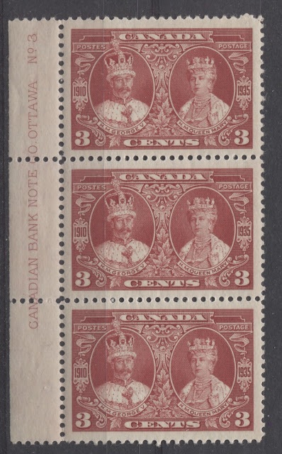 The 1935 Silver Jubilee Issue, which commemorated the 25th anniversary of King George V's accession to the throne, was the first to be produced by the CBN. It is a very pretty, well designed set, that offers some nice opportunities for the specialist looking to form a smaller, more focused collection. There are not a lot of paper varieties, or shades, or plate flaws. However, there are a decent number of plate blocks, imperfs, and proofs, as well as OHMS perfins to challenge you. The real challenge though lies in the plate proof cross gutter blocks, of which only two sets are reported to exist, and can set you back over $17,500!