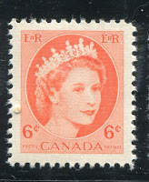As we will see, this is another issue that offers a considerable amount of scope to the budding and ambitious specialist. When I was very young, there were practically no detailed catalogue listings of the stamps of this issue: just the basic stamps, coils, booklets, Winnipeg tags and officials. However, over the years paper varieties have begun to be listed, and there are still many more varieties that are not listed at all, even now. While most of the stamps of this issue are relatively common and easily obtainable, there are a few very rare varieties which come onto the market very seldom and offer a considerable challenge to someone choosing to specialize in this set.