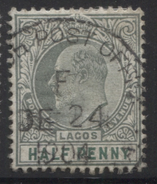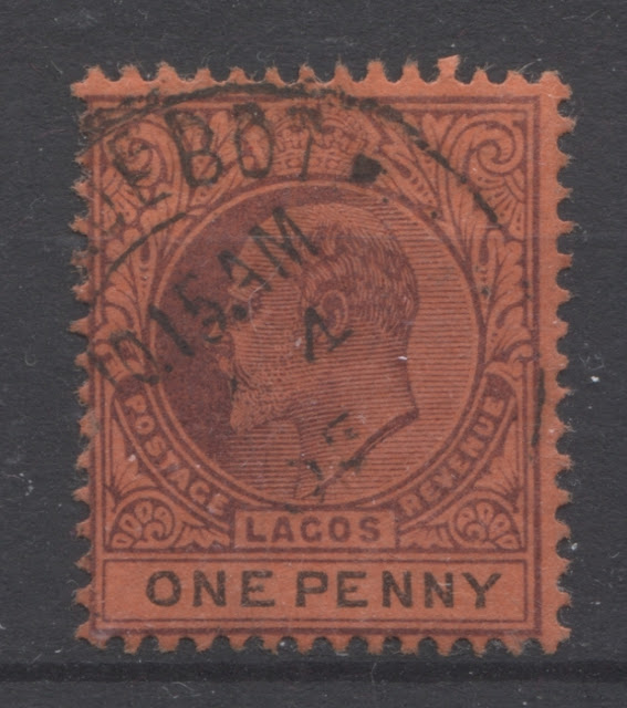 Last week I wrote a broad overview of the first King Edward VII Issue of Lagos, which was issued in 1904. I left off with an examination of some of the potentially constant plate flaws that occur on the issue, that are not listed in Gibbons. This week, I will show you some of the cancellations and postal history that can be found on these stamps.