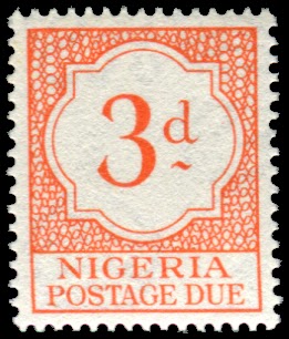 As far as postage due stamps go, Nigeria got into issuing them really late in the game by world standards. The first set, shown below was issued on January 4, 1959 and was lithographed by Bradbury Wilkinson.
