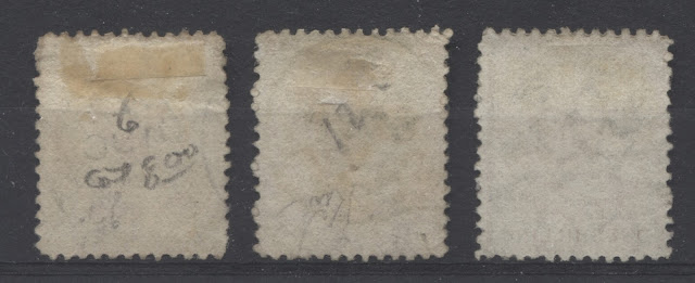The backs of these stamps show both the smooth wove paper with no mesh, and the wove paper showing distinct vertical mesh: