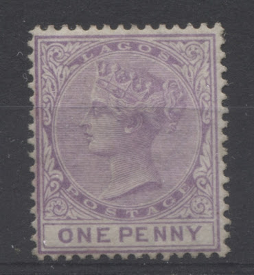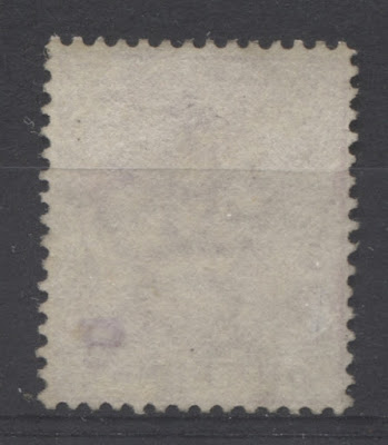 So you can see that the corner perforations are all even, indicating that it is a comb perforated stamp. The shade of lilac is clearly a pastel shade which is both milky and bluish.
