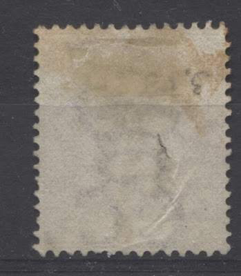 The characteristics of this stamp are almost exactly the same as the one with the Lagos diamond grid killer. According to Robson Lowe, the barred oval types appeared in February 1876, but according to the the West Africa study circle, this type was not widely known until July 1880. The Lagos barred diamond grid is apparently known used up until 1882, though it is generally all but replaced by the barred oval grid by 1880. This where a stamp is found with both types of cancellation, it is reasonable to assign it to the last line perforated printing, which in this case is this third printing from 1879.