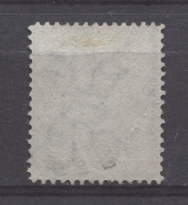 At 105 sheets of 60, or 6,300 stamps, this is tied with the second printing as the second scarcest of the printings that were made. I have identified this printing primarily by the colour, which for both the head and duty plate, is a very deep bright greenish blue. I only have two used examples, both of which are cancelled with the barred oval killer, which suggests very strongly that it is one of the later printings. The low number in my stock also supports the notion that it is from one of the scarcer printings. These can only be the first, second fourth and fifth printings. I have already identified the fifth printing as having a comb perforation, as you will see below, so it is not the fifth printing. It is neither the first, nor the second printing, because of the shade. So it must, by process of elimination, be the fourth printing. The paper is a thin, soft wove, that does not show obvious vertical mesh.
