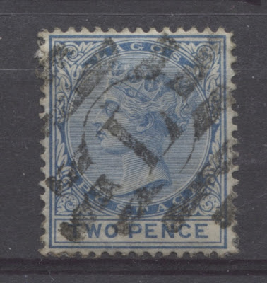 Notice the slight difference between the colour of the words "two pence" and the rest of the stamp. It is very subtle, but readily apparent if you look carefully at the scan.