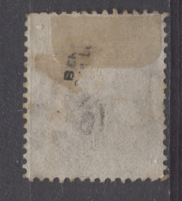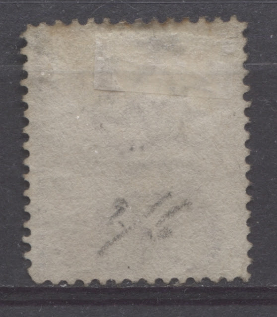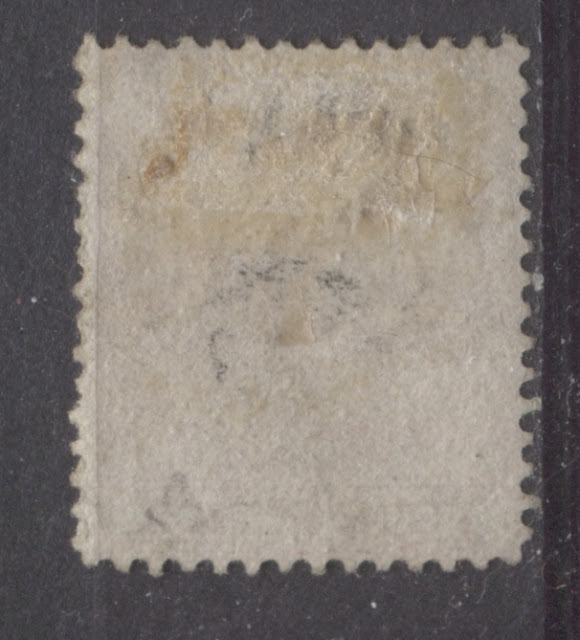 As best I can tell all the printings starting with this one are comb perforated. This is despite the fact that the other denominations printed at this time are all line perforated. I came to this conclusion because I have found three basic shade groups in the comb perforation, with two of these being equally scarce, and the last one being much more common. Given that the comb perforation equipment was acquired in 1878, it is plausible that the comb machines were used to perforate this value, and the line machines continued to be used for the 1d and 2d values that were printed at this time. All of the used examples I have seen of the next three printings, without exception, are cancelled with the barred oval grid cancel.