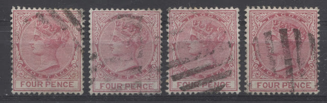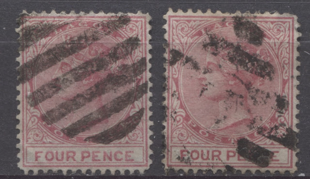 That concludes my discussion of this complex value. At this point, I have covered the bulk of this second Queen Victoria Issue. The only values left are the 6d and the 1/-, which are much more straighforward. These will be the subject of next week's post. Then I will be ready to move on to the Third Queen Victoria Surface Printed Issue. This issue was printed using the same colours as before, but the paper is watermarked crown CA. The issue was in use from 1880 until 1884, when the colours were changed.