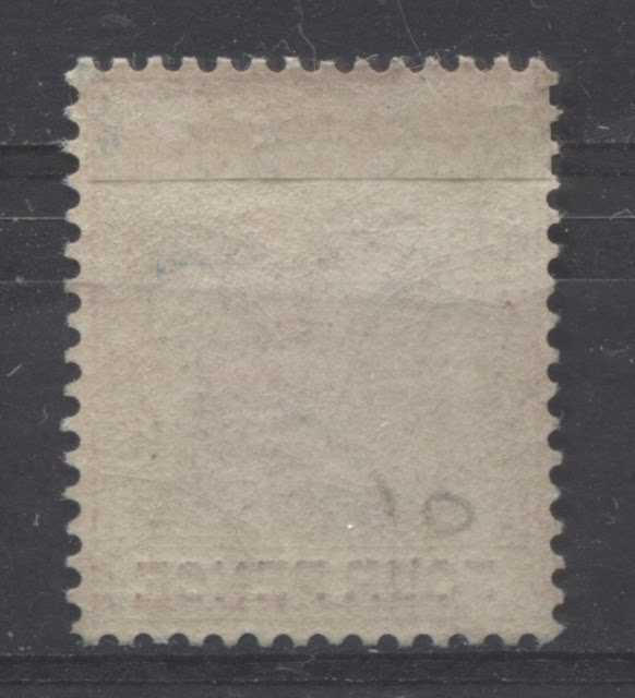 Once again, you can see that the duty plate colour matches the head plate. The stamp is line perforated, and on the back, neither the watermark, nor the vertical mesh is readily visible.