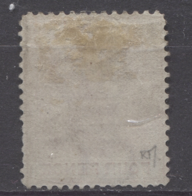 This value was the only one in the series to exist with the watermark sideways. Ince's work does not definitively state which of the six printings these stamps are from. However, all the examples I have seen are line perforated, which would suggest that they are from the first four or five printings, as the sixth printing for sure comes only comb perforated. However, Ince does note that the stamps of other colonies that were produced with a sideways watermark and the perforation 14, were all produced between 1876 and 1880, so the dates are of limited help unfortunately. He has hypothesized that these were all the work of a single guillotine operator (the individual who cut the watermarked paper into sheets), which the dates would seem to support.