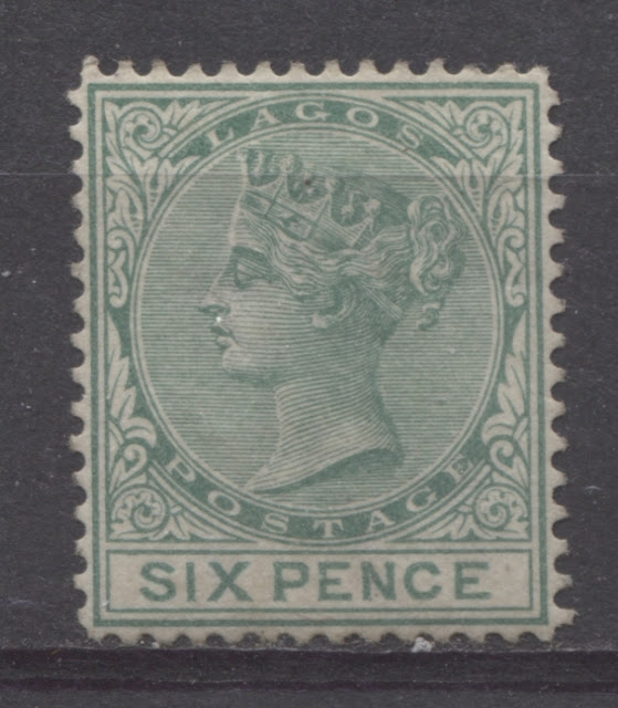 You will notice that the colour is the exact same deep, bright green as the mint stamps. Also note how the two stamps are clearly line perforated, and how they are both cancelled with the barred oval grid cancel, which replaced the Lagos diamond barred grid.
