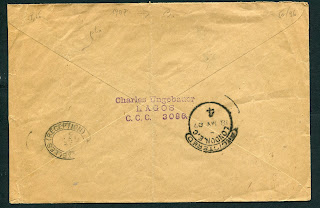 I am long overdue for another post. Gosh how time flies! It is hard for me to believe that nearly two months has flown by since I wrote my last post. I have, as I write now selected all the covers that I wish to include in my exhibit at the upcoming West Africa Study Circle meeting in London. I have selected 207 covers from Lagos, all the way through a strong showing of the 1973-1986 definitive issue. This selection includes nearly all of the covers that I have presented in previous posts, plus all the best covers from my collection. In selecting them I have focused on exotic destinations, and multi-stamp frankings, as well as famous recipients and postage due covers.