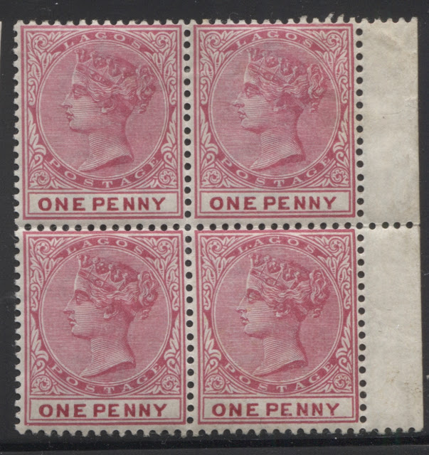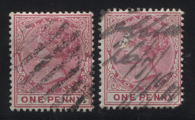 In addition, this should mark the beginning of the end of the use of the earlier barred oval, and smaller 21 mm Lagos CDS postmarks. My examination of the 1/2d stamps from this period last week revealed that these early postmarks were still quite prevalent, and found on the majority of used stamps. So my expectation is that we will see the same thing with these stamps.