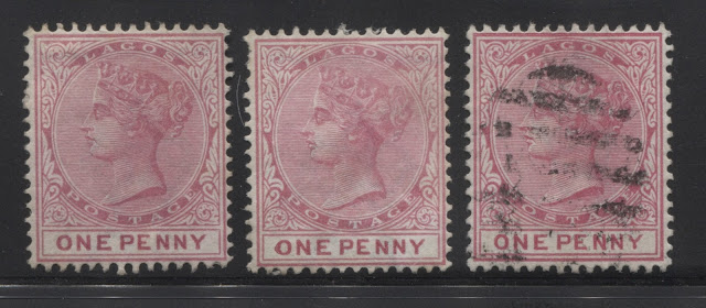 This last printing in the group is also the one for which I have the largest number of stamps, which is to be expected, given that the number of stamps sent to the colony increased with each subsequent printing after the shortage of low value stamps that occurred in 1893. Interestingly, very few of the stamps in this group are used, with the vast majority being mint.
