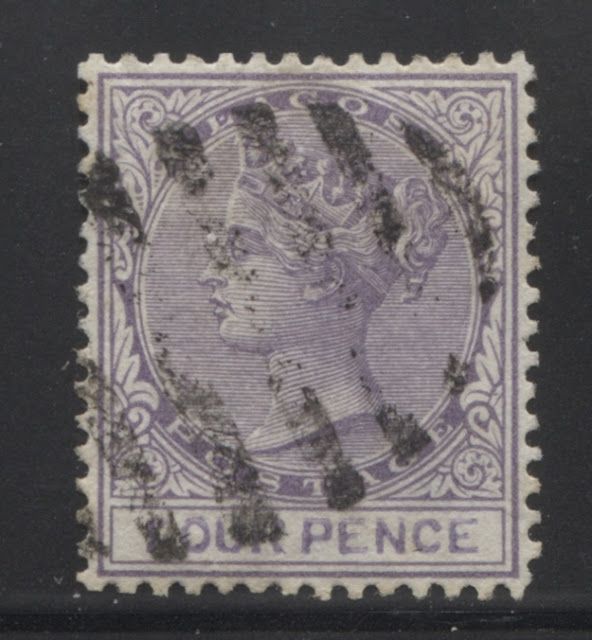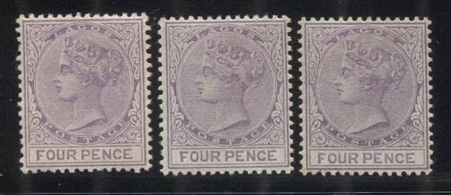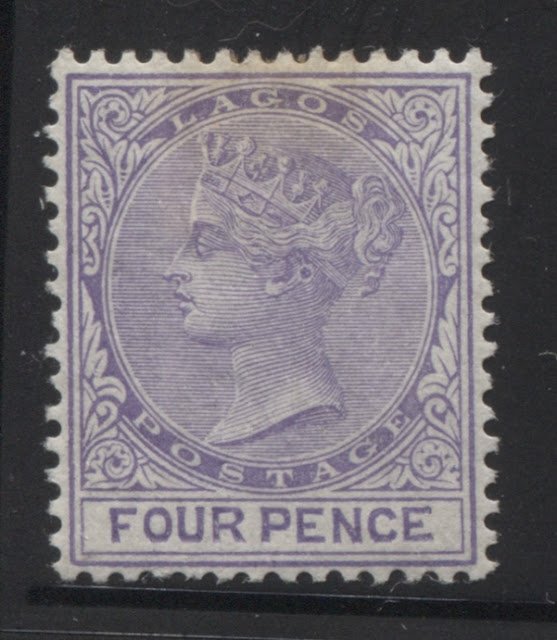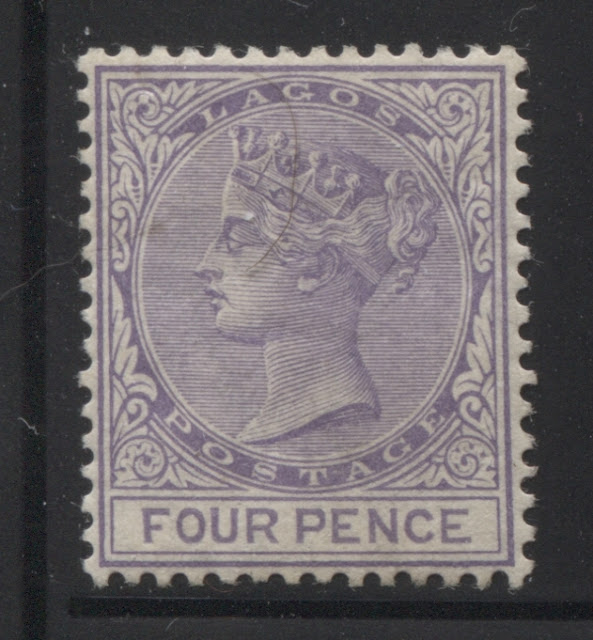 Today's post continues my examination of the stamps of the second Crown CA Issue of Lagos, with the 4d Mauve. Between July 1884 and December 1886, 41,760 stamps were dispatched to the colony in 11 different printings as follows:
