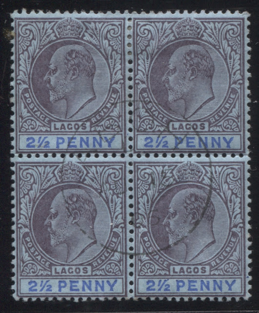 Today's post begins a new series of posts which will finish off my examination of the stamps and postal history of Lagos. I have completed my examination of the Queen Victoria issues, and so it is now time to look at the stamps of Edward VII's reign. Lagos amalgamated with Niger Coast Protectorate in 1906 and became part of Southern Nigeria, so stamps were only produced for three years during his reign, from 1904 to the end of 1906. They did continue to be used after amalgamation, right up to 1914, when Southern Nigeria joined with Northern Nigeria to become Nigeria as we know it today.