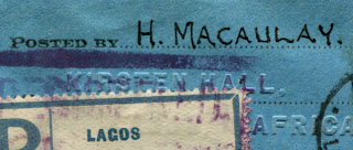 My heart literally jumped out of my chest. I thought: No, it can't possibly be! Then I saw the embossed "Kirsten Hall" underneath the handwritten name. I went on Google and looked up Kirsten Hall. Low and behold the first hits that came up mentioned that Kirsten Hall was Herbert Macaulay's residence in Lagos during this time.