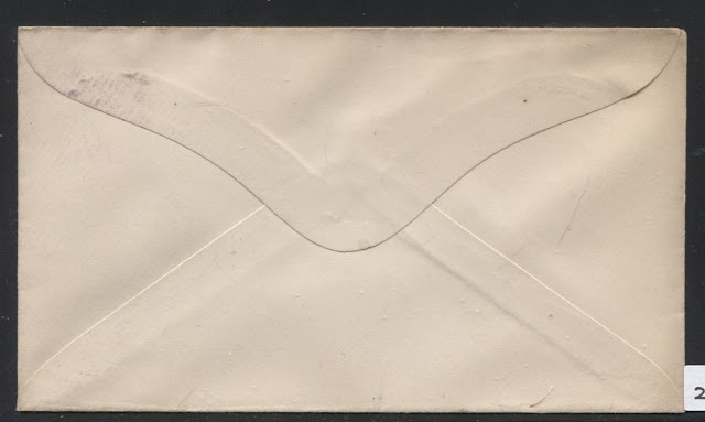 Here is another, less clear example of the same handstamp that was used to tie two 1d lilacs and a 1/2d vermilion to a large piece. This would likely have paid the foreign UPU letter rate to the UK.