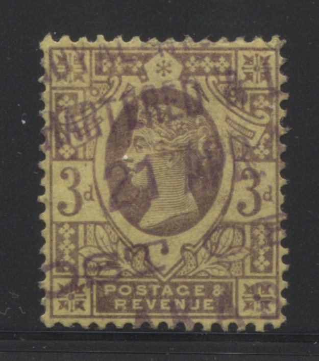 A single 3d purple on lemon Queen Victoria Jubilee definitive stamp, cancelled at Akassa (Gibbons Z33)