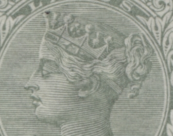 The above is a close-up of the vignette of one of the stamps that shows that nearly all the detail of the hair and diadem is clearly visible and shows no signs of plate wear.