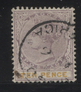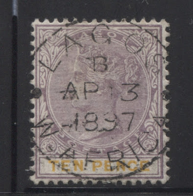 I also have one used example, with a lovely April 13, 1897 Lagos CDS cancel as shown below: