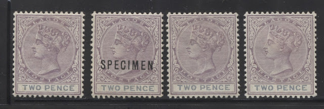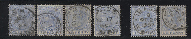 Today's post will conclude my coverage of the printings of the 2.5d ultramarine, and will start looking at the 2d lilac and blue. The last post left off at the 37th printing of the 2.5d. The stamp was first issued in April 1891 and was printed for the last time in August 1901. This is just over 10 years. At one printing per quarter, this translates into approximately 41 printings that we would expect to see, if one printing was made each time that stamps were sent to the colony.