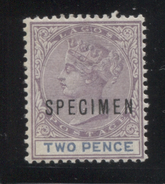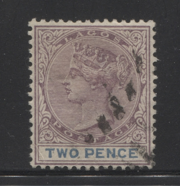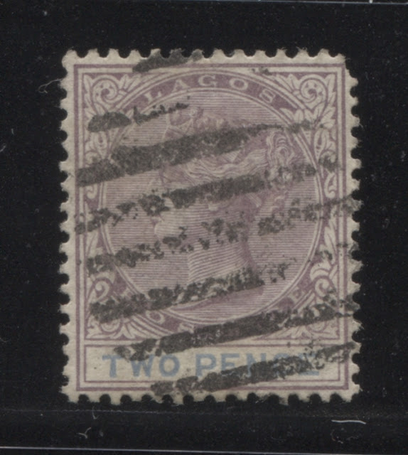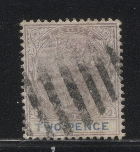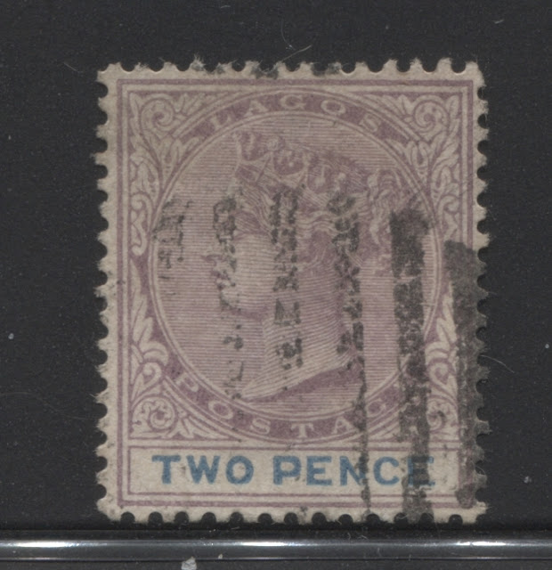 I have a single mint example of this printing, and two used examples, both of which are cancelled with strikes of a Lagos CDS, dated September 24, 1895. This would appear to be one of the last printings made among this group.