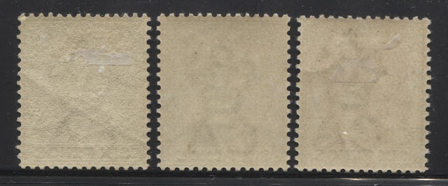 Unlike other posts, I am not going to show back scans of every single stamp, as they do not give much more information than what we can glean from the shades, the general characteristics of gum and the cancellations. Instead, below is a scan showing the three different kinds of gum as found in the second, fourth and sixth printings: