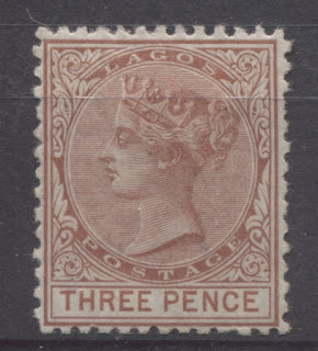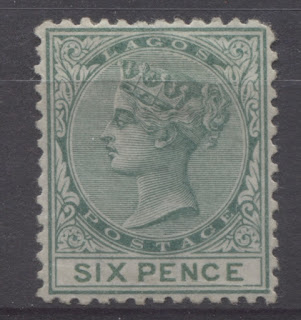 Today's post will deal with the very first issue of Nigerian postage stamps: the Queen Victoria surface printed issue produced by De La Rue and first released in 1874. It will surprise many collectors to learn that there were no fewer than seven printings of these stamps issued between May 12, 1874 and May 13, 1875. With careful study and attention to colours, paper differences and cancellations, it is possible, I believe to distinguish them all. Despite this relatively high number of printings, the print quantities themselves were very small, with the result, that overall, these are by all accounts, very scarce stamps, especially mint with full original gum. Gibbons prices mint stamps with gum in fine condition, but in my experience, most mint stamps I encounter either have no gum at all, are sweated gum, or re-gummed. When the stamps are found with original gum, it is often very heavily hinged, or have pencil markings. Given the circumstances of the overall scarcity of the stamps, I do not believe that these issues should deter you from buying such stamps. I have never seen any mint blocks or multiples of any kind on either this or the perf. 14 crown CC issues, which again, is another indication of their immense scarcity.