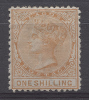 - The 1/- orange would have been used primarily for 1 ounce letters to the UK, but could also have been used on heavier parcels.