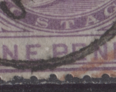 You can see that the first "N" of "Penny" is clearly shorter than the second. I have found this on the 1d carmine crown CA stamps, which suggests that it was never corrected, and is constant.