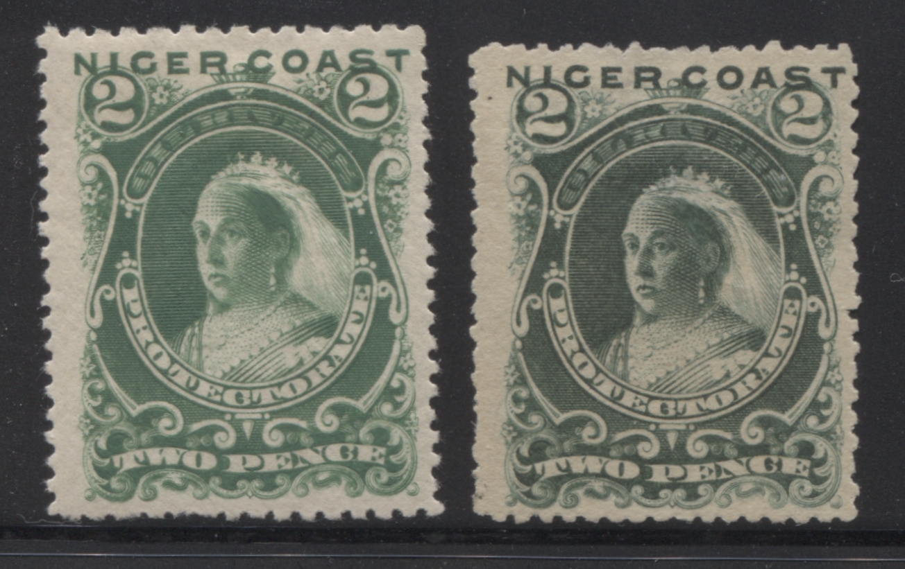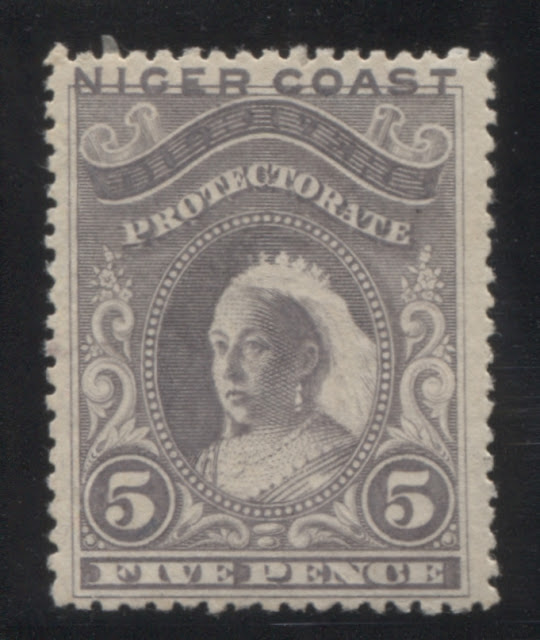 The first of these issues is unwatermarked and is unique in the sense that it is essentially an overprinted set in which the overprint has been incorporated into the design. The stamps were originally inscribed "Oil Rivers", which was the name previously given to the protectorate. However, by the time the stamp designs were ready for production, the name of the protectorate had changed to "The Niger Coast Protectorate". So, rather than produce completely new designs, the existing designs were altered to obliterate the words "Oil Rivers" and to add the words "Niger Coast". The alterations were done so well, that the stamps look as if they were originally designed this way.