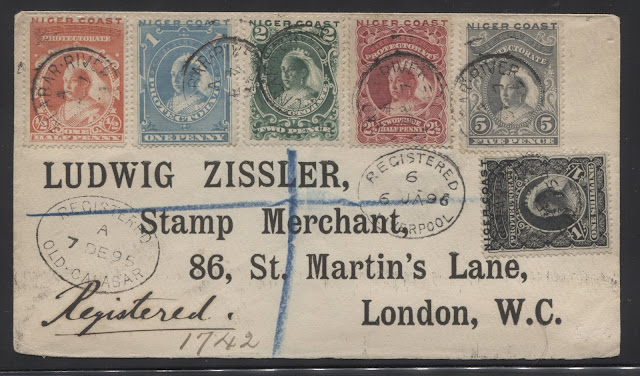 It is a registered cover sent to Ludwig Zissler, who I believe was a London stamp dealer on January 6, 1896, after this set had been replaced by the second unwatermarked Waterlow issue.
