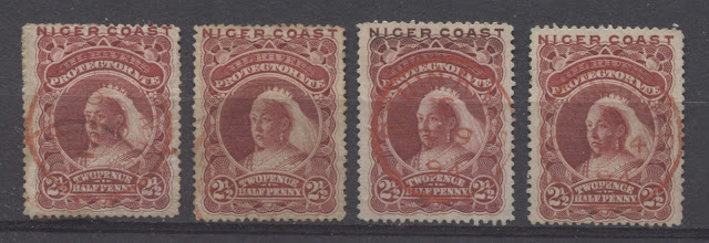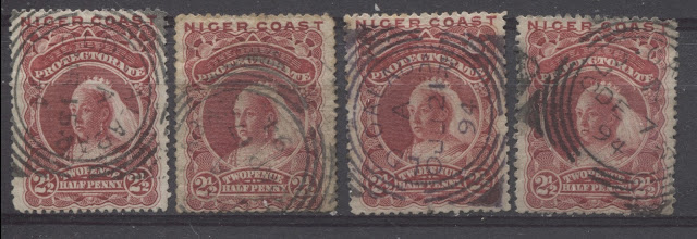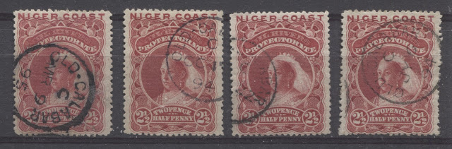 Lastly, we have four of the Old Calabar squared circle cancellations from 1894. All are time code A.