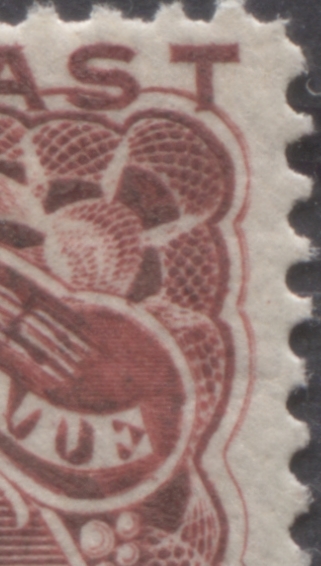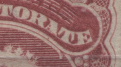 Here is a nice, clear example of the doubling of the upper right frameline. Despite the notation by Ince and Osborne that this doubling occurs on both left and right framelines of all stamps, it is not usually anywhere near this clear. On this stamp the doubling is only this clear on the right side of the design, and not on both sides.