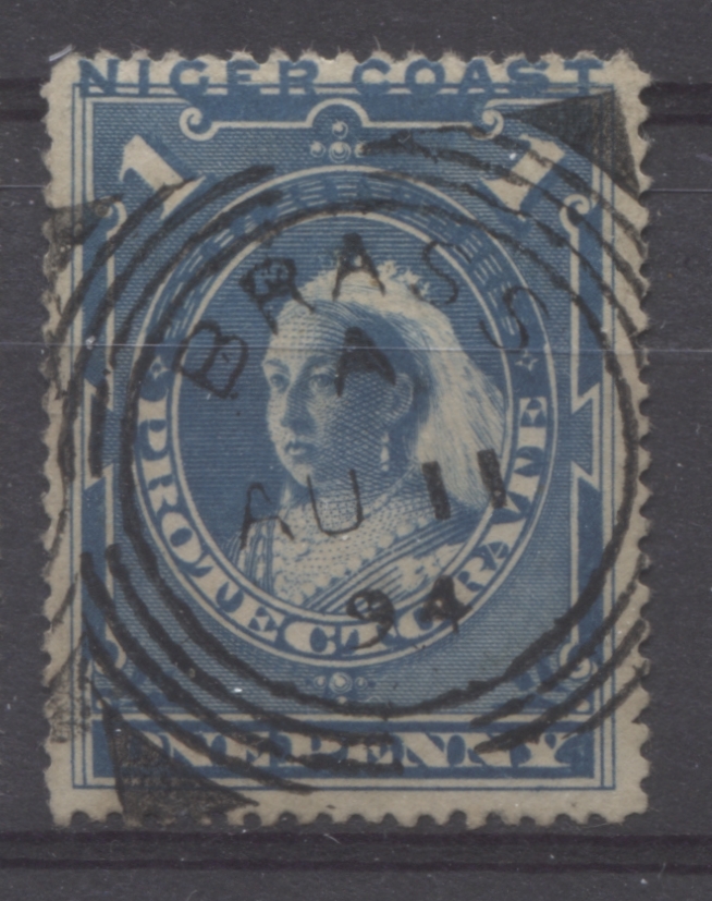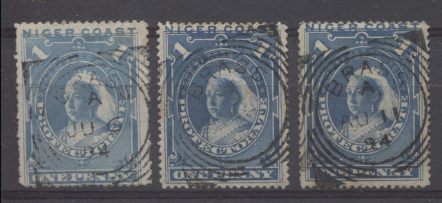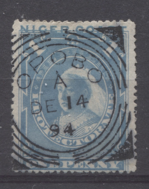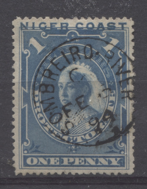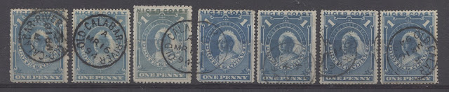 This village is less common than Old Calabar, Old Calabar River and Bonny, but it is not rare. Here, I have one CDS cancellation dated November 11, 1895, which is a little on the late side for this issue, but still within period.