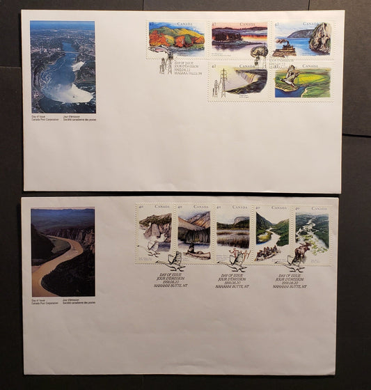 Canada #1325a, 1408-1412 40c & 42c Multicolor 1991-1992 Heritage Rivers Issues, 2 Canada Post FDC's Franked With Se-tenant Stips & Pairs, HB Envelopes Between 40,000-50,000 Produced, Cat. Value $9.2