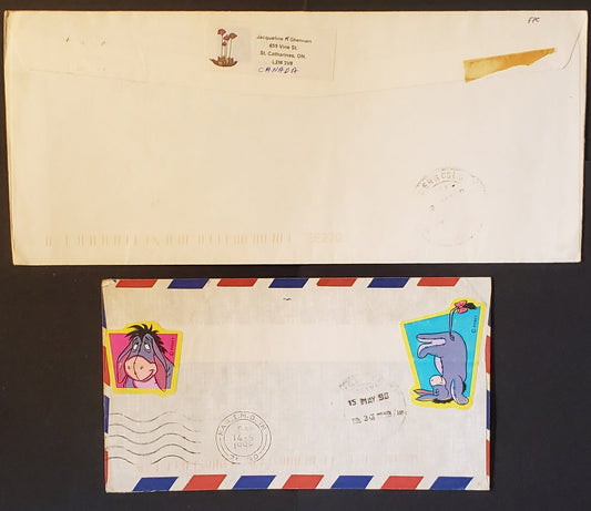 Canada #1349i, 1350-i/ii, 1352 1c, 2c, 5c Edible Berries Used As Make Up Stamps on 2 Airmail Covers to Pakistan