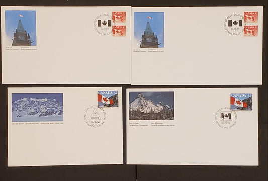 Canada #1399-1403, 1432-1435, 1413, 1419 42c, 50c Multicoloured Ski Jumping - Jos Montferrand, 1992 Winter Olympics - Canadian Folklore Issues, 4 VF Canada Post Official FDC's Franked With Singles & Combinations, HB Envelopes