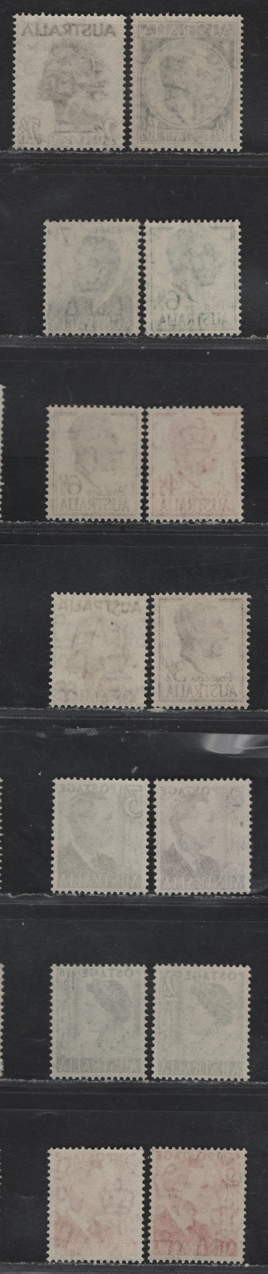 Australia SG#234-237d, 238, 247-253 1.5d - 2/6d Green - Sepia King George VI - Aporigine, 1950-1952 Royal Portrait Definitive Issue, 14 F/VFNH/OG Singles, 2.5d Brown is LH, Others are NH