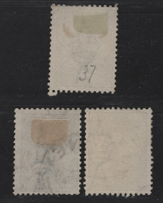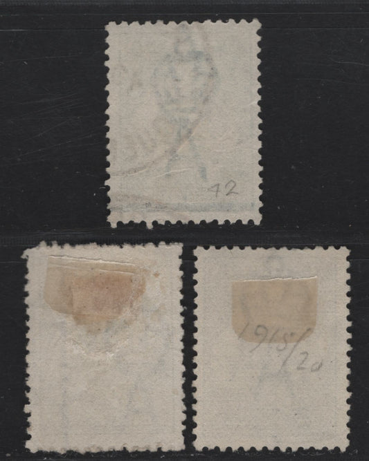Australia SG#38, 40 6d - 1/- Ultramarine, Pale Ultramarine & Blue Green Kangaroo, 1915-1927 Kangaroos Issue, 3 Fine/Very Fine Used Singles, Dies 2 & 2b, Third Wmk