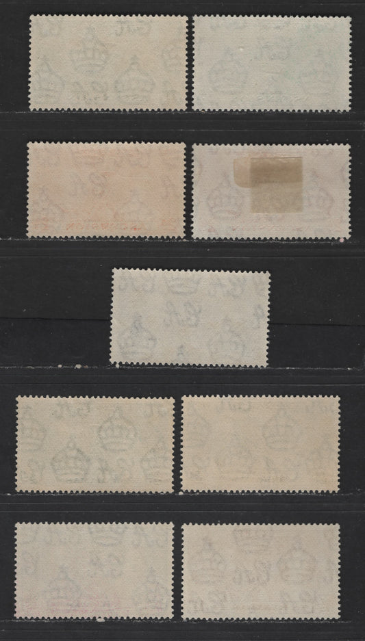 Ascension & Bahamas #37-39, 97-99 1/2d-3d Deep Myrtle Green - Bright Ultramarine King George VI & Queen Elizabeth, 1937 Coronation Issue, 9 Fine & VFNH & OG Singles Including Distinct Shades Of Most Values