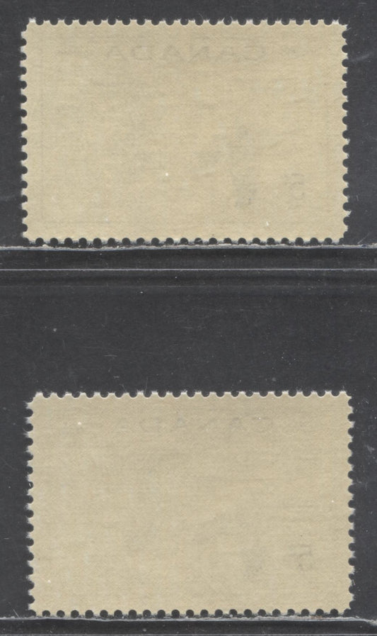 Canada #340p 4c Violet & Dull Violet Queen Elizabeth II, 1954-1962 Wilding Issue, 2 Fine NH Singles Light Yellowish Winnipeg Tag On DF2 Greyish Smooth, Horizontal Wove Paper, Smooth, Semi-Gloss Gum