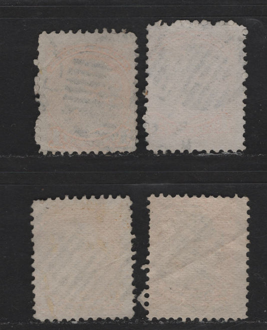 Canada #35a 1c Orange Queen Victoria, 1870-1893 Small Queen Issue, 5 Ungraded Used Singles, Reference Lot, Generally VG or Good, Various Paper Types, Perf 12