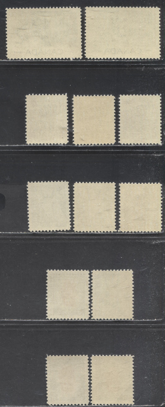 Canada #352-354, 357-358 4c-5c Violet & Ultramarine Various Subjects, 1955 Wildlife Week Issue - Prime Ministers Issue, 12 VFNH Singles, Horizontally Ribbed Paper, Different Shades Cream & Yellowish Cream Satin & Semi-Gloss Gum